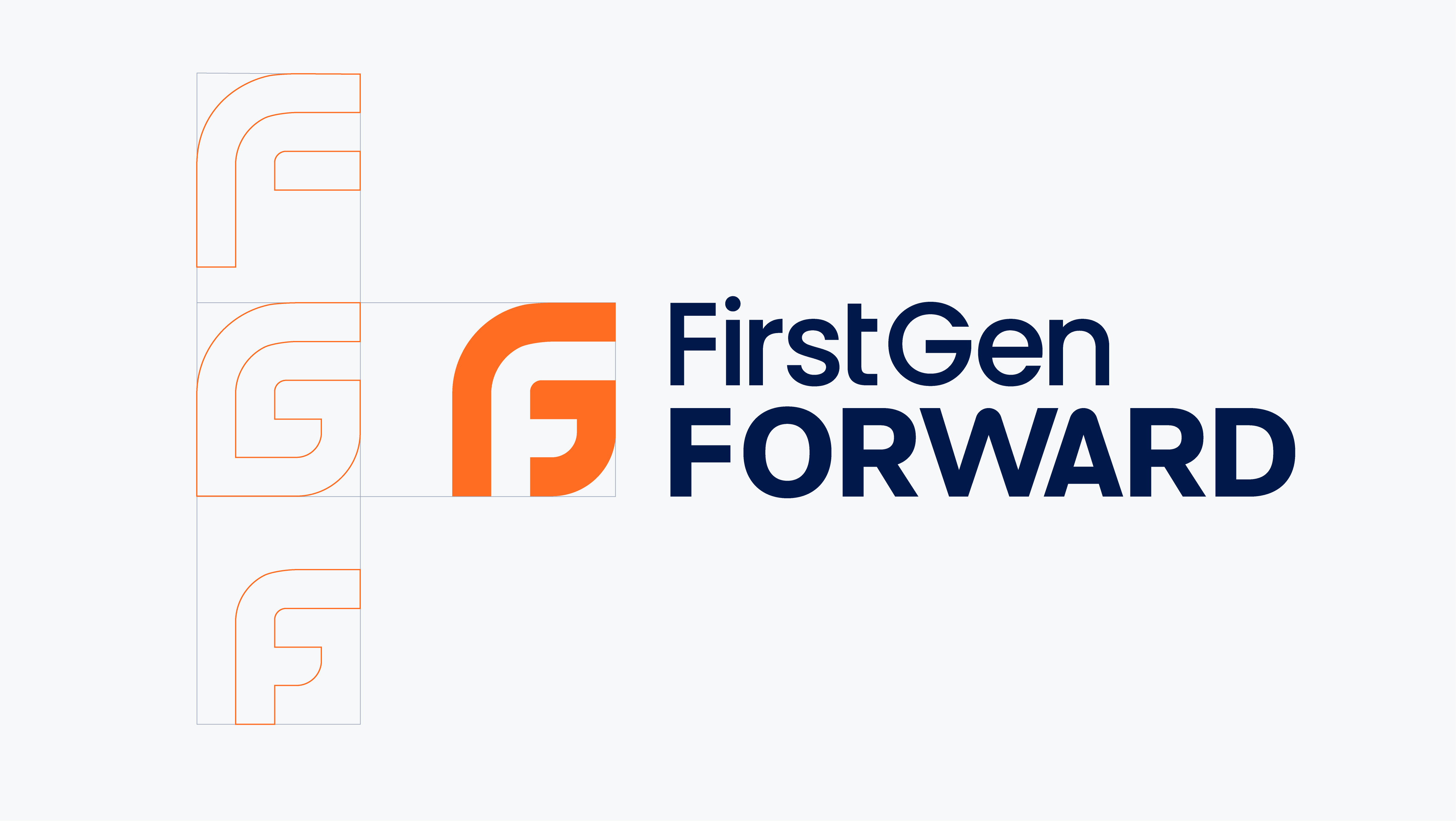 To evoke the organization’s leadership on behalf of the FirstGen population, Mighty Good created a logo mark that employs a unique fusion of “F” and “G” letters into one symbol, with the “F” formed from the negative space inside the “G”. The result is a clean, distinct, bold symbol