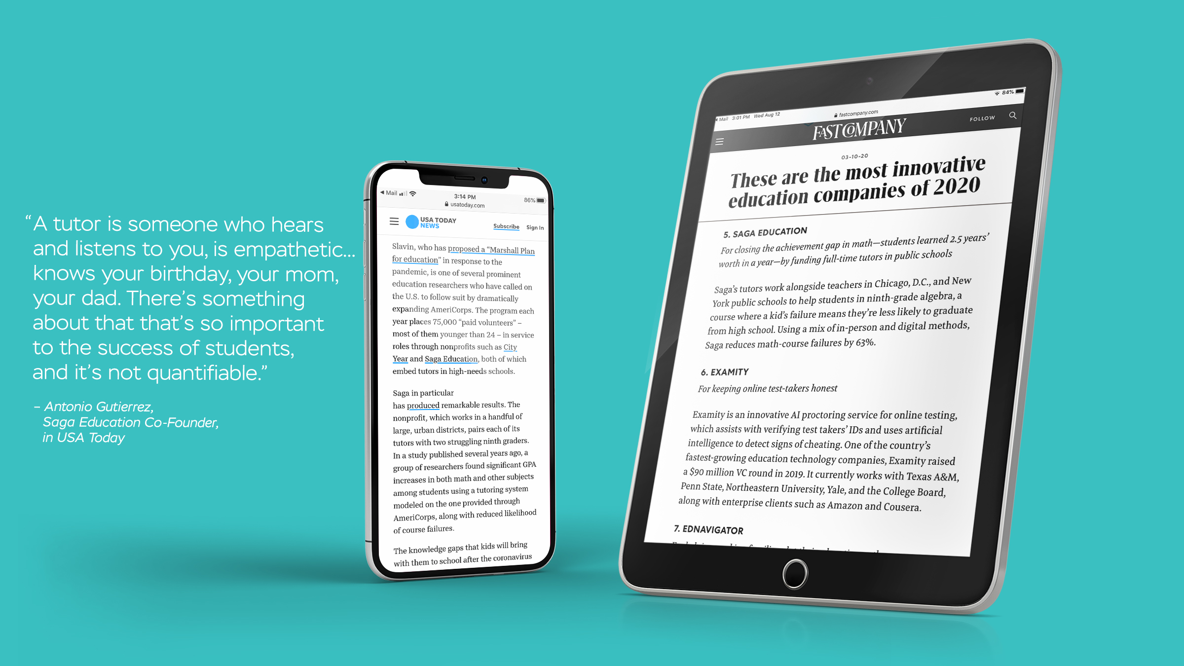 While Saga Education provides math tutoring support, its model and outcomes are about much more than math. Through a series of interviews with donors, school District leaders and alumni tutors, we learned that these critical audiences saw improved math scores as a marker of something bigger: the power of supportive relationships to help young people see and achieve their own potential. While Saga’s rigorous outcome data were impressive, we discovered that the brand could achieve greater emotional resonance -- and more effectively recruit the tutors it needs to scale -- by reorienting the brand around Saga’s belief in the power of human relationships.